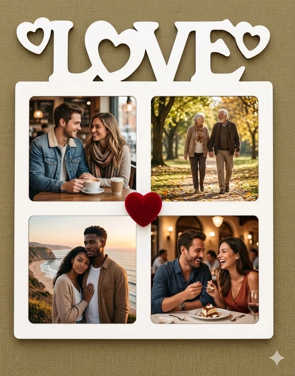 This beautiful custom photo frame features elegant script text, 4 fixed photo slots, and a clean white premium finish. Designed with a black round magnet backing, it can be easily placed on refrigerators or metal surfaces. Perfect for gifting and preserving everyday memories.