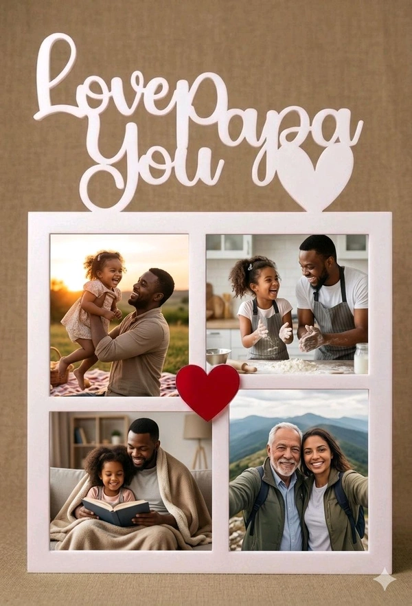 This beautiful custom photo frame features elegant script text, 4 fixed photo slots, and a clean white premium finish. Designed with a black round magnet backing, it can be easily placed on refrigerators or metal surfaces. Perfect for gifting and preserving everyday memories.