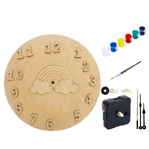 DIY MDF Clock Kit-Bring creativity to life with this all-in-one MDF Clock Project. Designed for easy assembly and maximum fun, this kit is the perfect screen-free activity for makers of all ages. ??Perfect For: Creative Hobbies: A relaxing way to personalize your home decor.??Summer Camps: An engaging, hands-on craft that keeps kids focused and productive.??Child Development: Enhances fine motor skills, color recognition, and patience while teaching the basics of telling time.??Kit Includes:MDF Base & Cutout: 10-inch diameter (4 mm + 2.5 mm thickness). Hardware: Clock machine set and a sturdy back hook. ??Art Supplies includes :Base, numbers, clock machine & needles, Paint kit, brush, and glue stick.??For customisation/ bulk order contact us on WhatsApp