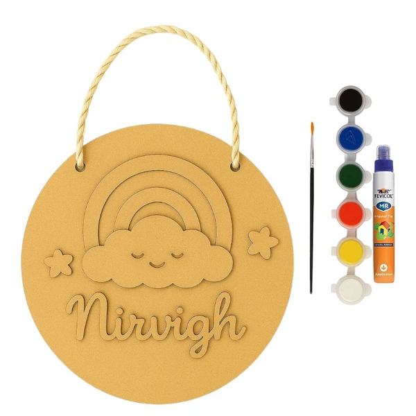 DIY MDF Kit- Designed for easy assembly and maximum fun, this kit is the perfect screen-free activity for makers of all ages. ??Perfect For: Creative Hobbies: A relaxing way to personalize your home decor.??Summer Camps: An engaging, hands-on craft that keeps kids focused and productive.??Child Development: Enhances fine motor skills, color recognition.??Kit Includes:MDF Base DIY kits for kids Nameboards.Base 8*4 Inches - 4mm. Name & cutouts - 2.5mm. Paint, rope to hang & brush .Provide the name to be customised on the checkout page.This kit comes with Tempera colors.??Any theme can be made -For customisation/ bulk order contact us on WhatsApp