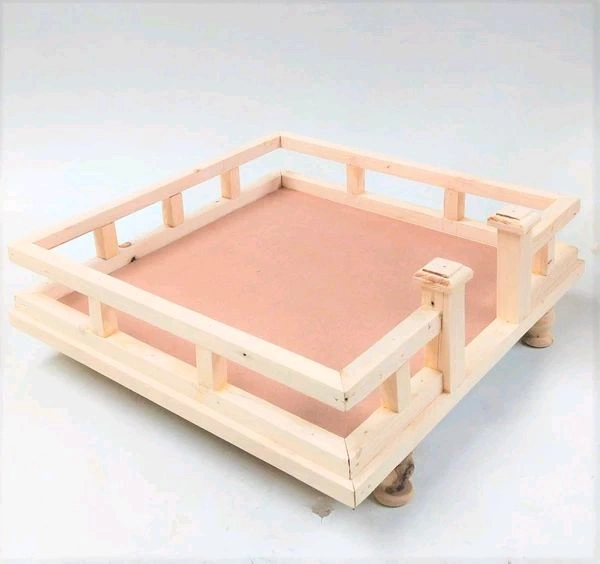 Pinewood mantap or big chowki suitable for art like Kolam, Madhubani etc Leg height is 2" and Mantap box height is 3.5"