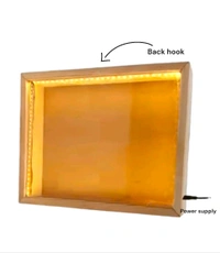 - This is MDF shadow box with LED lights 3 sides and has acrylic sliding lid.
