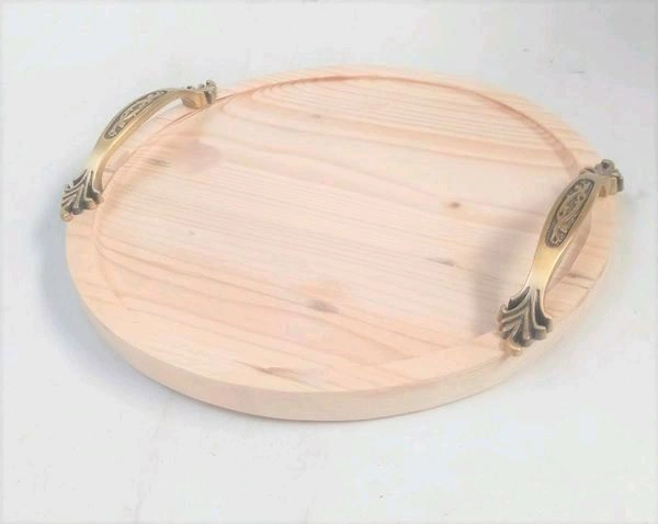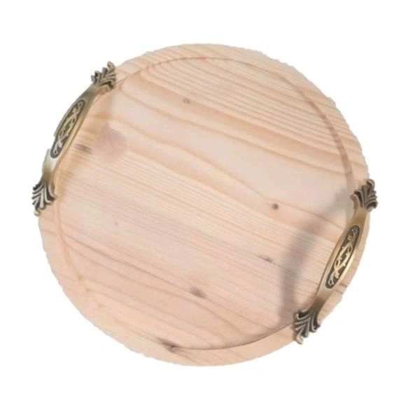 Round Pinewood Tray- Brass Handle